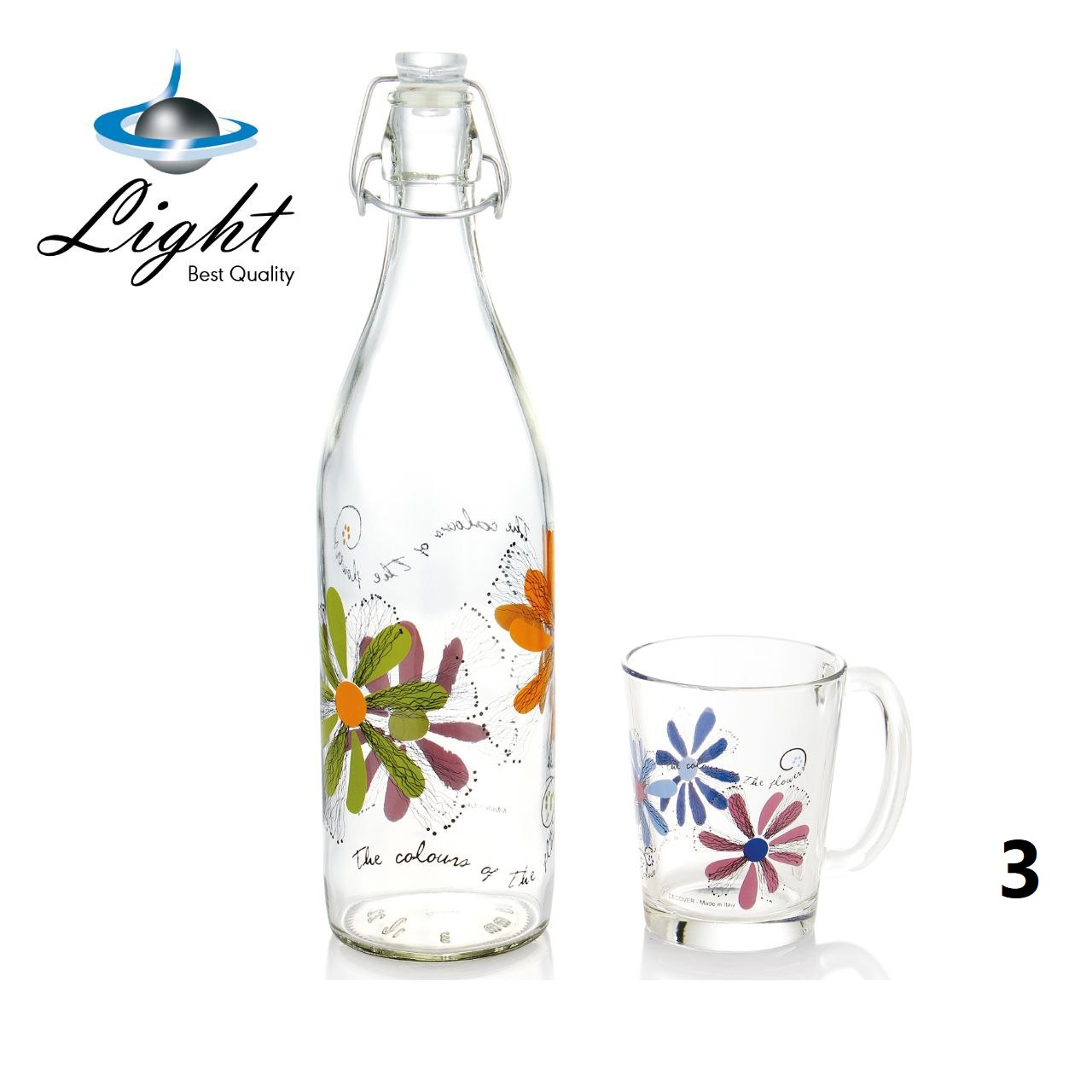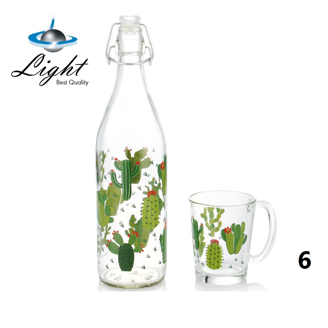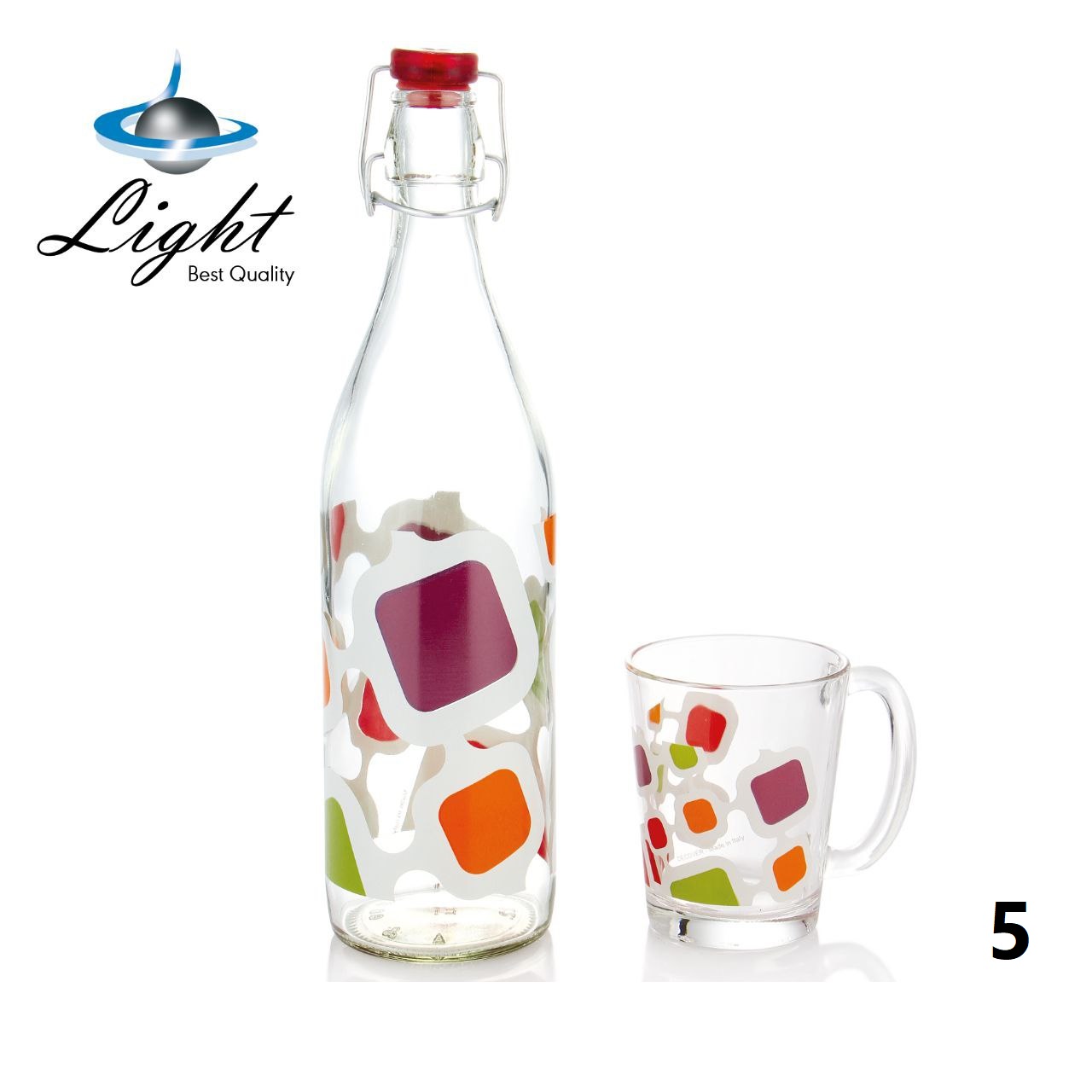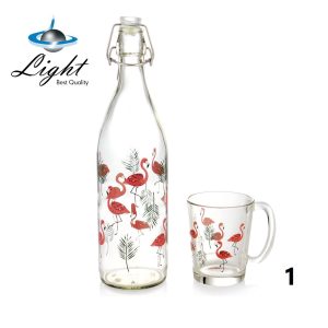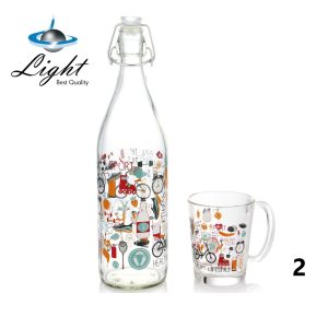 بطری شیشه ای آب به همراه ماگ لایت