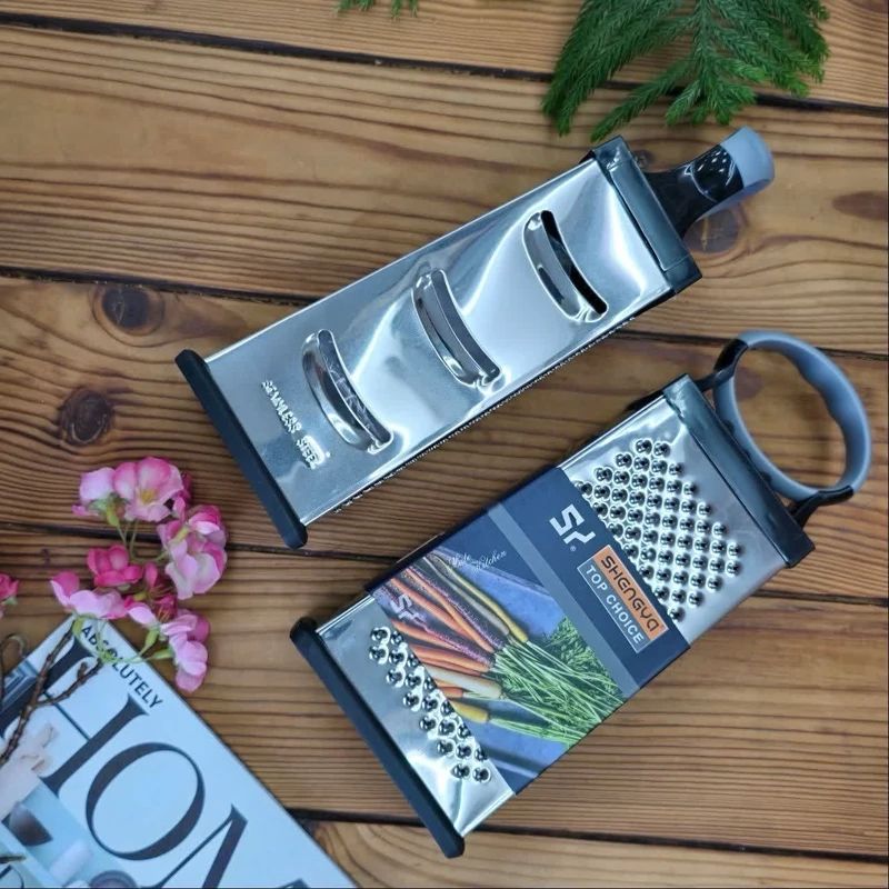 این محصول دارای دسته باکالیت محکم و ضد آب است که با طراحی 4 وجهی می تواند به صورت ارگونومیک در رنده کردن آسان مواد غذایی و اهرم قرار دادن آن به سطح به کمک شما آید. این محصول نیز در 4 طرف از جنس استیل ضدزنگ و بسیار تیز است، دارای تیغه در ابعاد ریز تا درشت است که شما را از انواع مختلف رنده بی نیاز نماید.