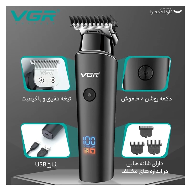 | تجهیزات همراه | شامل 5 عدد شانه، کابل USB برای شارژ، و برس تمیزکننده. |