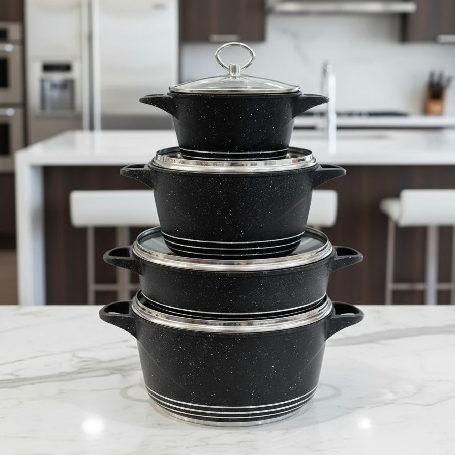 این سرویس شامل 3 عدد قابلمه به سایز 24 ، 20 و 16 و یک عدد تابه به سایز 24 میباشد